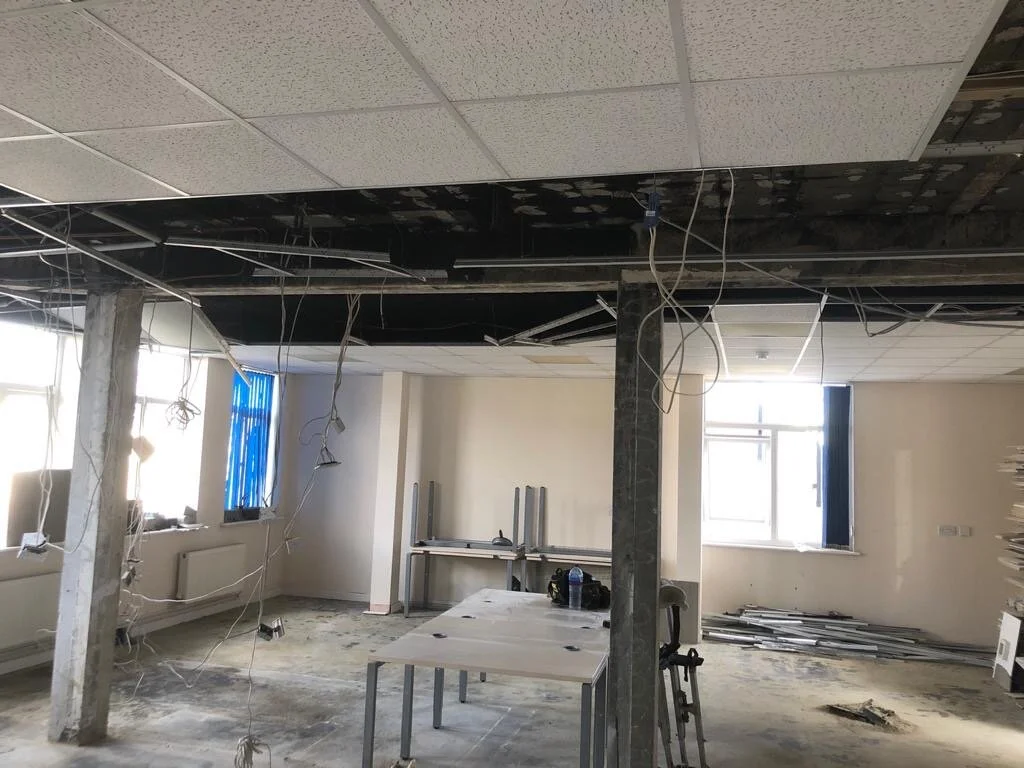 In Waterlooville, a customer was on a tight budget so SCS was drafted in to repair an existing damaged ceiling. We made the suspended ceiling good by using old tiles and grid salvaged from other areas of the building.